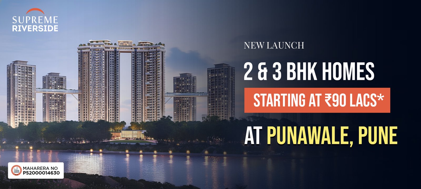 Set beside a tranquil riverfront, Supreme Riverside offers 2 BHK & 3 BHK Homes a refined living experience shaped by nature and thoughtful design. Spacious residences, expansive open spaces, and curated lifestyle amenities come together to create a calm yet luxurious environment. Designed for those who value peace, comfort, and quality, Supreme Riverside redefines modern riverside living.